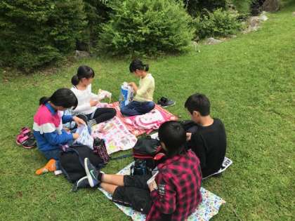 お家の人が作ってくれた愛情たっぷりのお弁当をいただきます。天気も良いので気持ちがいいです。