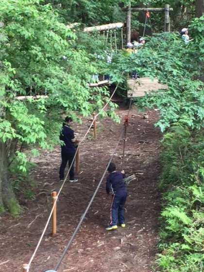 昼食後,「冒険の森」(アスレチック)を楽しんでいるようです!