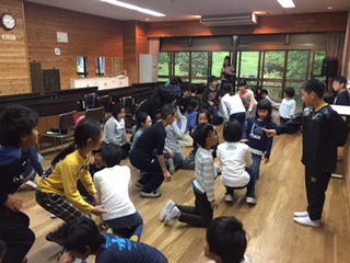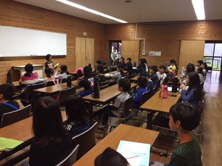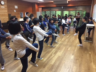 昨日に続き,雨天のため,今朝も屋内で行っております。