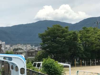 山の向こうにモクモクと入道雲が顔を出し始めましたが,西野小学校上空は眩しいくらいの太陽の日差しが差し込んでいます!