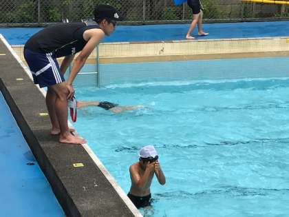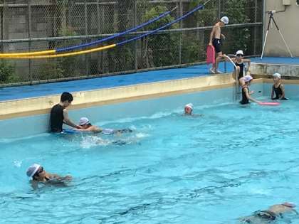 この時間も後半は,泳力に応じてコースごとに分かれての練習です。時折,先生からアドバイスをもらい,また,練習に励んでいます!