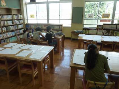 みんな大量のプリントを前に黙々と問題に向かっています。