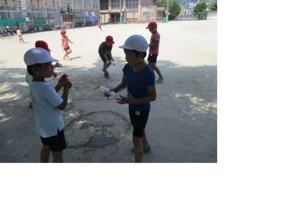 前半は,運動場で水遊びをしたり,しゃぼんだま遊びをしたりしました。「水がまとに当たったよ!!」「大きなしゃぼんだまができた!」とおおはしゃぎしていました。
