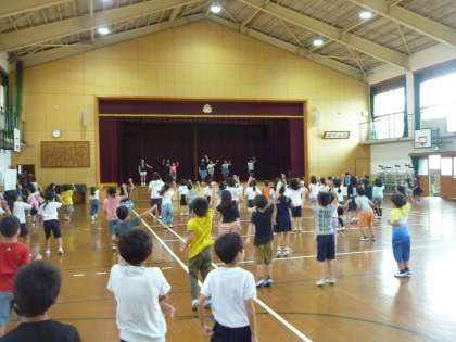 今日のお昼休みに1・2年生と一緒に全校ダンスの練習を行いました。