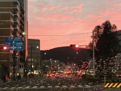 今朝,東の空には真っ赤な綺麗な朝焼けが見られました。
