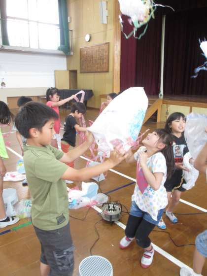 体育館で浮かばせてみました。