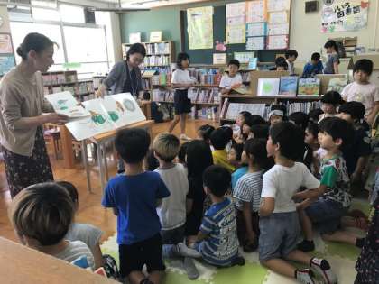 今日は,中間休みに「絵本の読み聞かせ」が行われました。