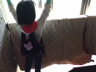 テントで使ったシュラフを干します。