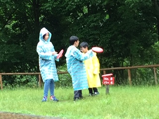 フライングディスクゴルフ,小雨の中でしたが,楽しくコースを回れました。