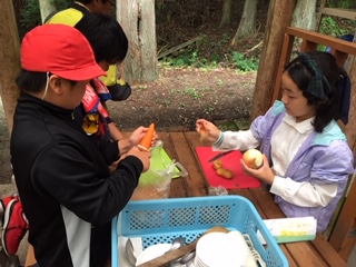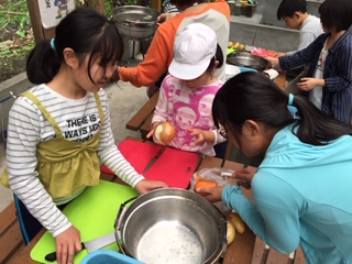 今日の晩ごはんは2回目の野外炊事でカレーを作ります。