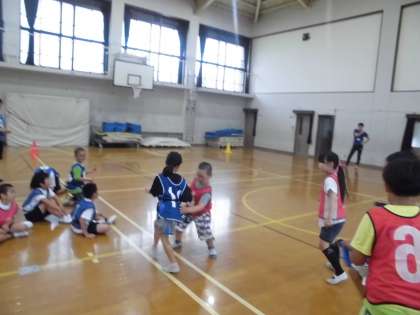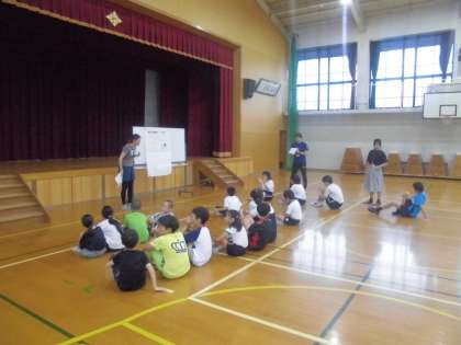 7月11日(木)は山階小学校でプール学習を行う予定でしたが,雨のため,山階小学校の体育館をお借りして,「しっぽとり」や「リレーあそび」をして,体を動かしました。