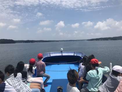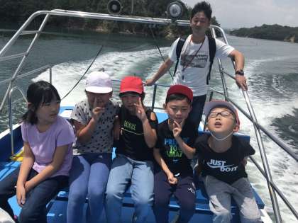 潮の香りのする風を受けながら,船はなかよし港を目指しています!