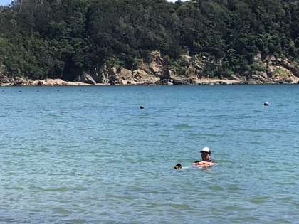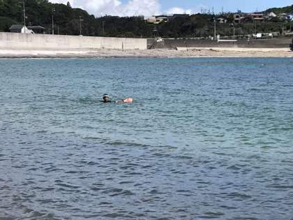 安全確認の為,先生数名が試しに海に入っています!