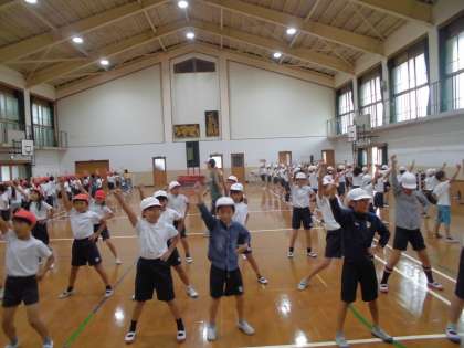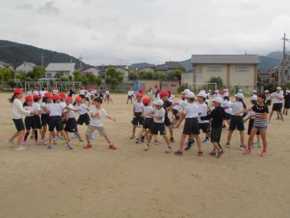 運動会に向けて,ダンスや棒引きの練習をしました。