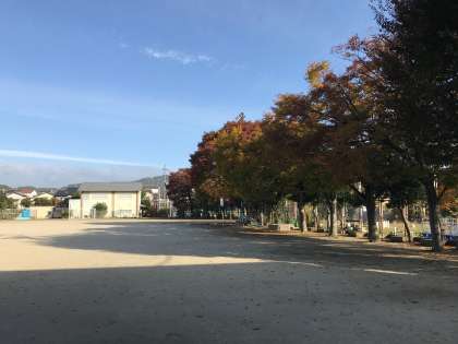 西野小学校の校庭は赤や黄色の落ち葉で埋め尽くされています・・・