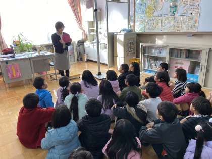 今年初めての身体計測をしました。身長や体重を測る前に,保健室の岡崎先生から,手についているばい菌のお話を聞きました。水で洗っただけでは,手がほとんどきれいにならないことを聞いて,子どもたちはびっくり。風邪やインフルエンザが流行する時期です。石鹸を使ってしっかり手洗いしましょう。