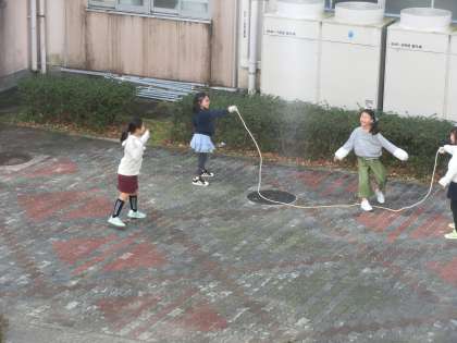 大縄跳びをしている子が多くいます。