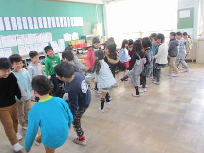 昨日に引き続き,今日もわらべ歌に親しみ,楽しみました。今日は「かごめ かごめ」や「はないちもんめ」などを実際に遊びました。これからも,遊びの中でも歌い楽しんでほしいです。