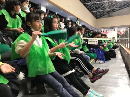 リーグ戦終盤の試合とあって,外国人選手のパワフルなスパイク,日本人選手の体を張ったスーパーレシーブなど,一流選手のファインプレーを間近で観戦して,子どもたちも大興奮!
