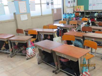 17日(金)に行われた避難訓練の様子です。いつ起こるかわからない地震に備えて,みんな真剣な表情で取り組んでいました。