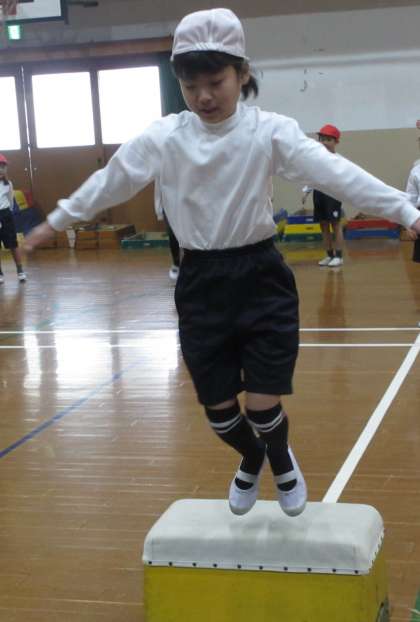 1年生は,体育で「とびばこあそび」をしています。今日は,初めてだったので,とびばこの準備の仕方や後片付けの仕方を伝え,安全に活動するためにどんなことに気を付けるのか確認する時間を多くとりました。。その後,ふみこしとまたぎこしという技に挑戦しました。次回は,またぎ乗りやまたぎ降りなどの技にも挑戦していきます。