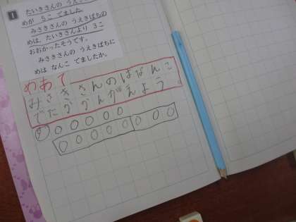 算数の「おおいほう すくないほう」の学習の様子です。数図ブロックを使って説明したり,ノートに自分の考えをまとめたり,頑張って学習しています。