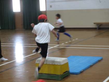 またぎ越しでは,片足で踏み切ることを確認し,上手に跳べるようになりました。