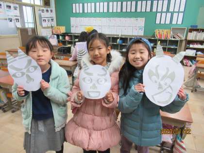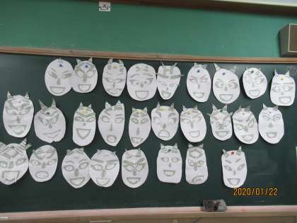 図工『たのしく うつして』の学習で,「鬼の顔」の紙版画に挑戦しています。今日は牙の生えた口を作りました。個性あふれる作品が仕上がってきました。