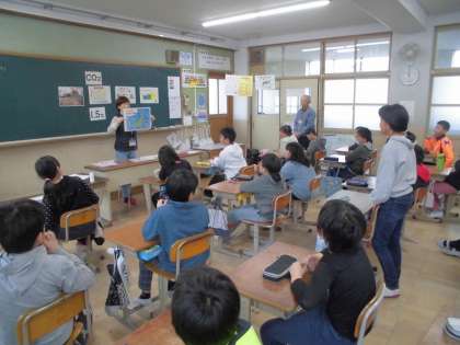 気候ネットワークより5人の先生に来ていただき,エコライフについてのまとめ学習をしました。