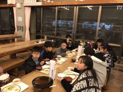 入浴後の夕食とキャンプファイア出発前の様子です。