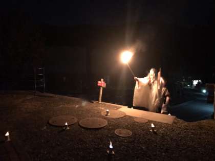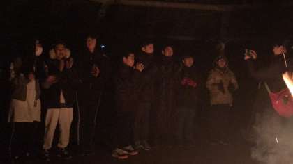 今から始まるキャンプファイアを行うため,夜道を歩いて営火場へ移動します。
