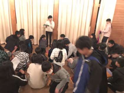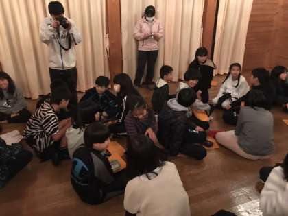 キャンプファイア終了後は宿舎に戻り,一日の振返りです。