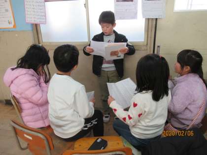 国語の学習で,読んだ本の「あらすじ」「心にのこったところ」「自分と比べたこと」を紹介し合いました。友達の話を聞いて,「読んでみたいな。」「その本,貸して!」という声がたくさんあがり,読書に親しむ良い機会となりました。