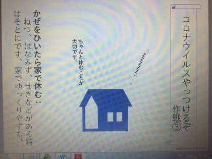 など,自分の身を守るための行動を子どもたちと話し合っていただき,一日も早い収束をみんなの力で実現させましょう。