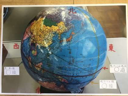 地球儀にはたくさんの線がひいてありますが,それぞれどんな名前がついているでしょうか?