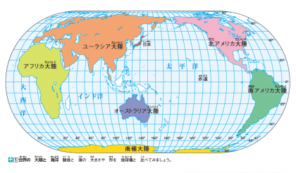 前回は地球にある6つの大陸と3つの大洋の名前を問題に出しましたが(※ページ下の写真参照),今回は地球儀について見てみましょう。