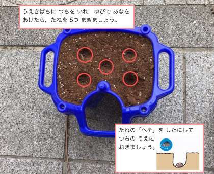お手数をおかけしますが,13日〜17日の間に,お子さんと一緒に種を蒔いていただくようお願いいたします。