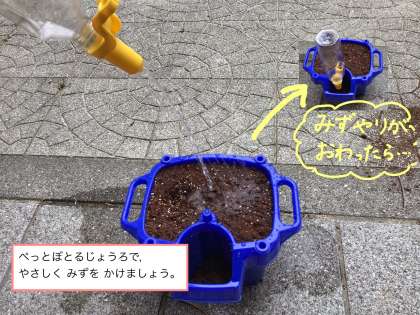たねを まいたら,まいあさ あさがおに おみずを あげましょう!