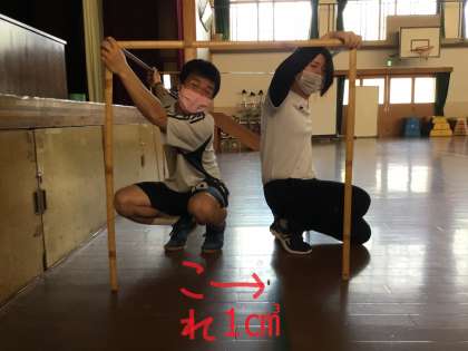 教科書P23にあるように,体積の単位で「立法メートル【㎥】」が出てきましたが,どれくらいの大きさになるのか,実際に1㎥を体育館で作ってみました。
