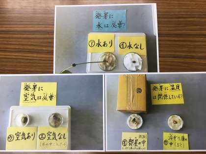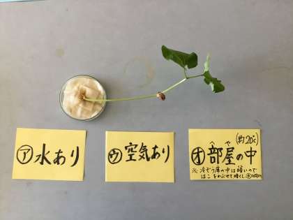 植物の発芽に必要な3つの条件,わかったかな〜。