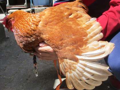 にわとりは はねを 大きく ひろげると こんなに 大きいことが わかります。