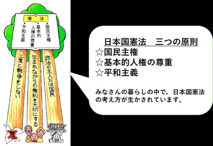です。みなさんの暮らしの中で大切にしなければならないことが,日本国憲法にも書いてありますね。
