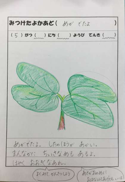 1ねん:みつけたよかあど「めがでたよ」