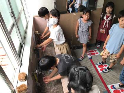 中間休みの終了と同時に,石鹸でしっかりと手洗いをしてから教室に戻ります。
