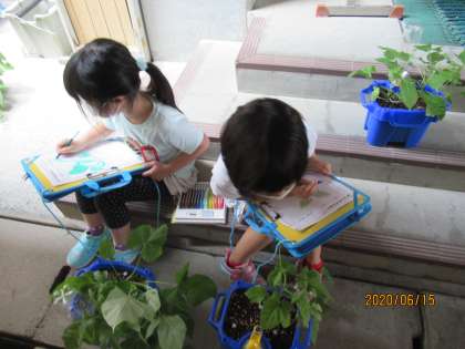生活科の時間に,あさがおを観察して気が付いたことを絵や文章で表しました。