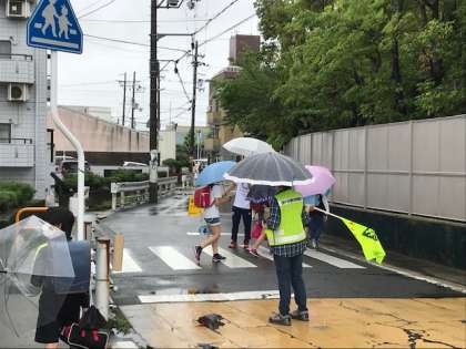 登校班に付き添っていただいている保護者の皆様,雨の中,本当にありがとうございます!おかげで,安心・安全な登校が出来ています。