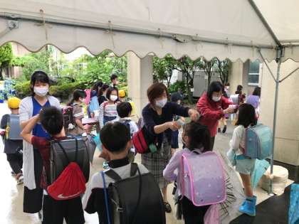さて,今日から校門での「検温」も非接触型体温計の台数を増やし3台で対応しています。特に,今日のように雨が降り傘を手放せないような時は,列の渋滞も改善され手早く検温を済ませることが出来ました!
