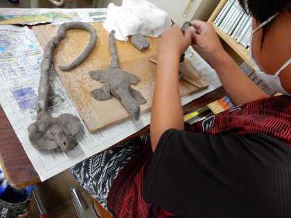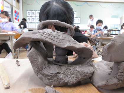 みなさん,ねんどが立つように工夫したり,いろいろなもようをかいたりしていましたね。