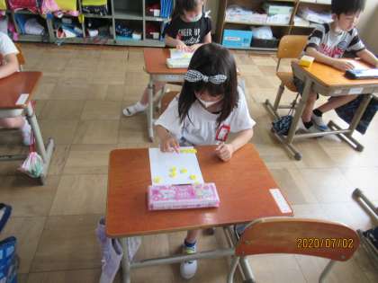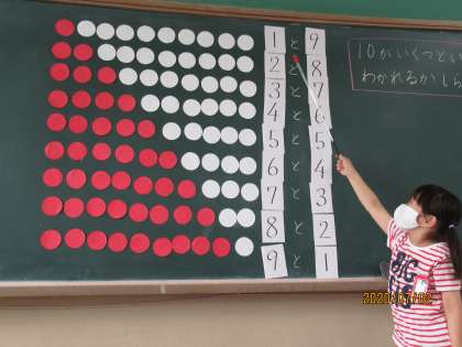 10がいくつといくつに分かれるか,おはじきでゲームをしながら,楽しく確かめていきました。