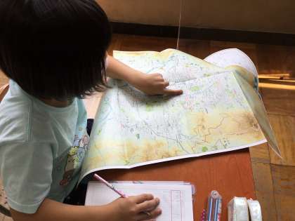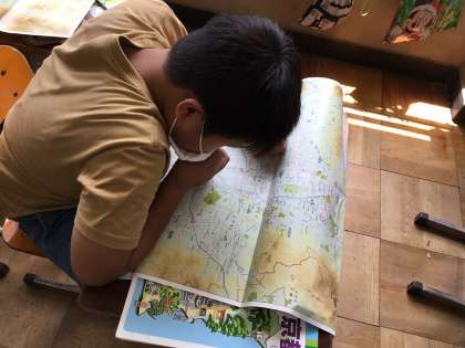 今日は京都市役所はどこにあって,何をしているのか考えました。地図で食い入るように探し,見つけていました。見つけてからは京都市役所周辺には何があるのか考えました。